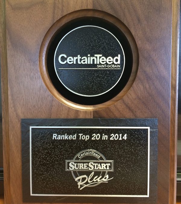 Cornerstone Roofing, Inc. has received our commemorative award recognizing our Top 20 Rank in 2014 for CertainTeed’s most SureStart PLUS warranted jobs nationwide. Honored to be rated 17th in the United States by CertainTeed! Thank you!...