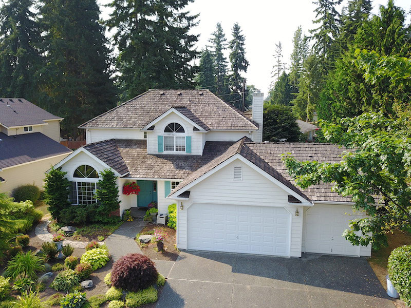 Cornerstone Roofing replaced the Cedar Shake roof on this Everett home with CertainTeed Landmark Black Walnut composition shingles.